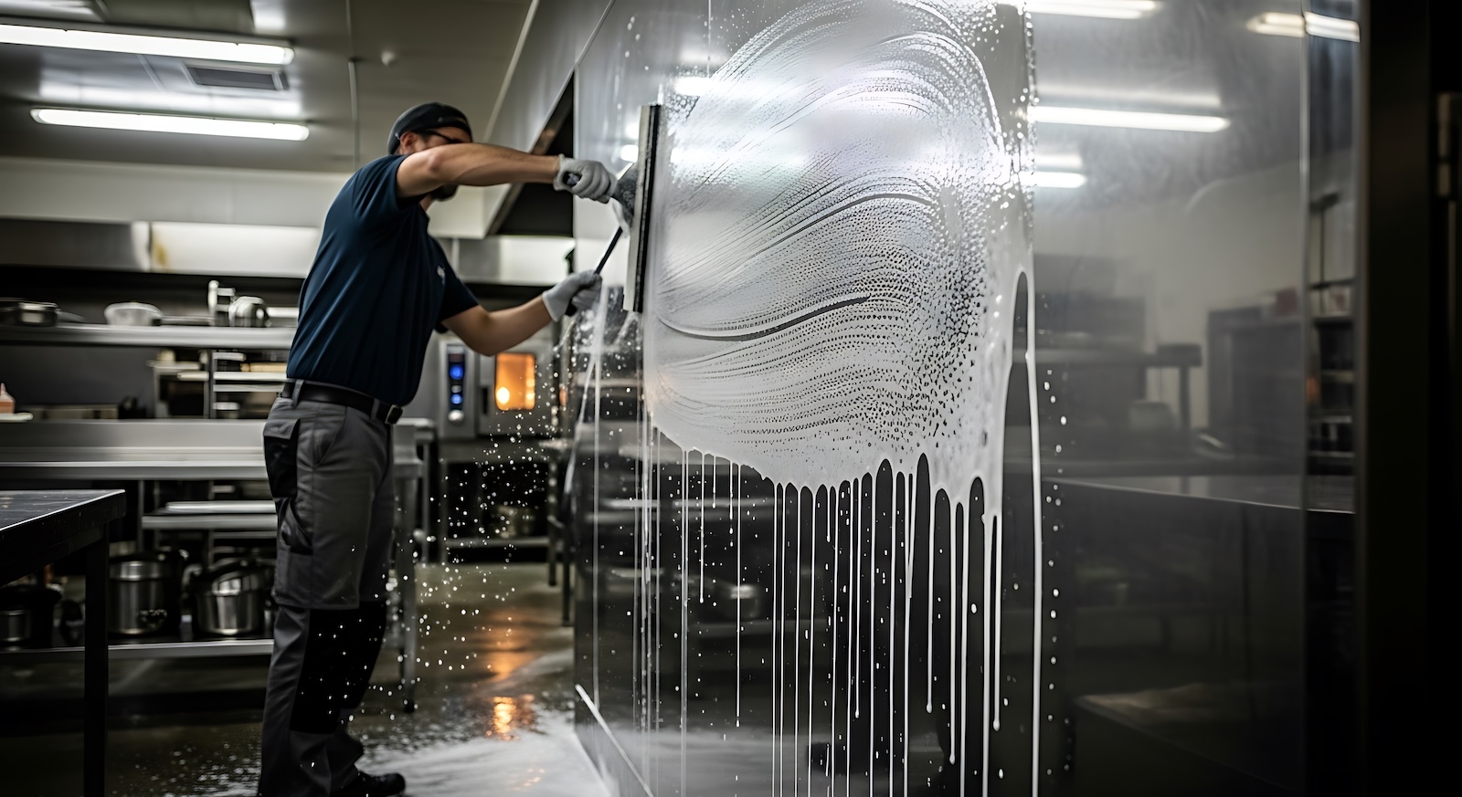 Mit einem Dampfreiniger wird Schmutz und Fett von den Glasflächen gelöst. Diese Methode eignet sich gut für stark verschmutzte Fenster, bei denen herkömmliche Reinigungsmethoden nicht ausreichen.