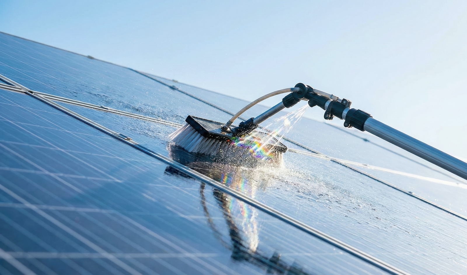 Die fachgerechte Solarreinigung erfordert aufgrund der starken Verschmutzung zum einen die passende Reinigungstechnik. Zum anderen sind die Module häufig in einem steilen Winkel von 45° auf Dächern angebracht, sodass auf die Sicherheit des Anwenders zu achten ist.